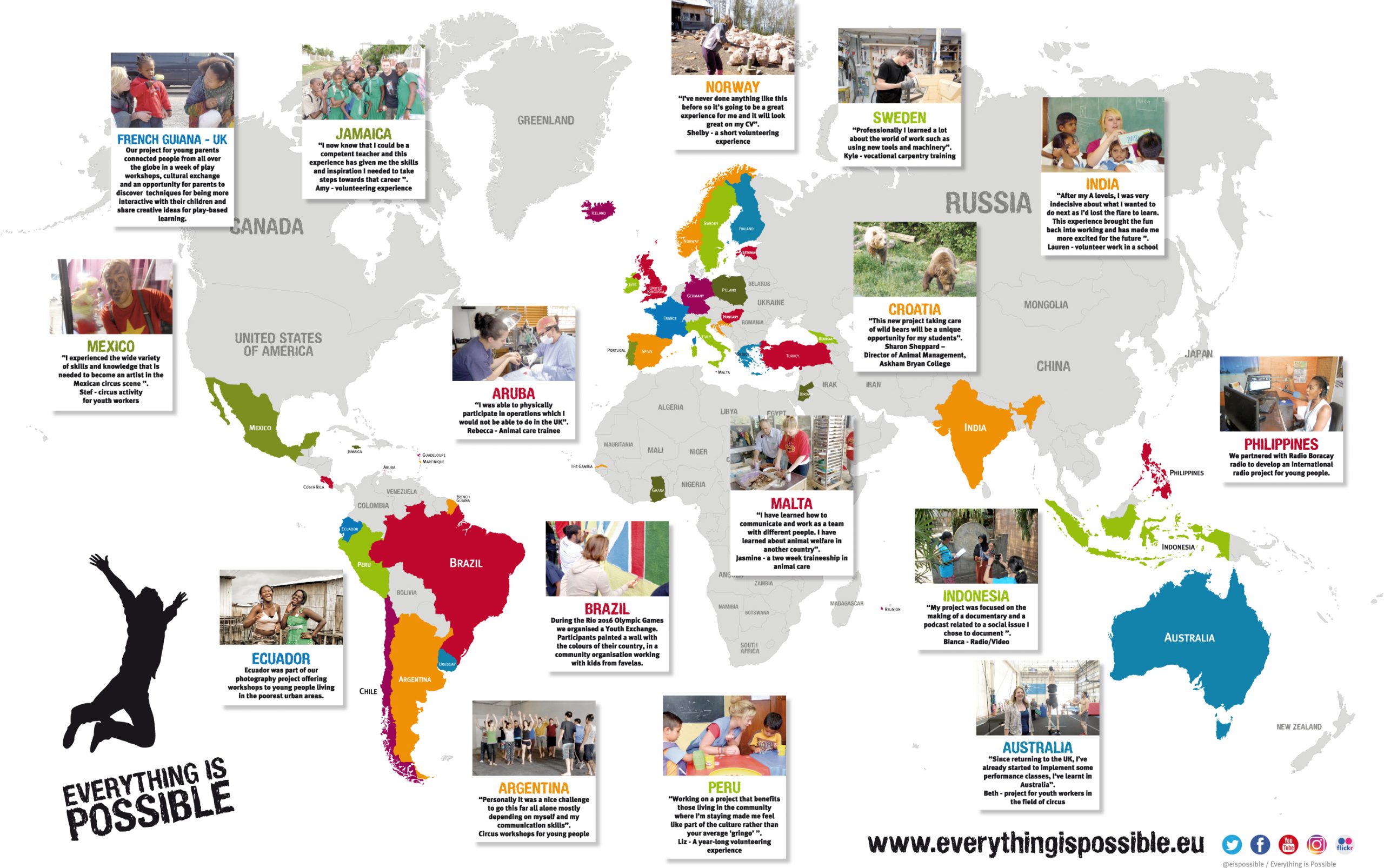 So that’s what we did. We’ve worked hard over the years to get the basics right in order to make ‘everything possible’ for as many young people as we can. With a partnership network of more than 25 countries worldwide, over five categories of placements, short and long-term international volunteering, Voactional Educational Training placements, youth exchanges and summer camps, we now offer a lot of choice. We are very proud of what we have achieved — and we’re even prouder of the young people we have helped.